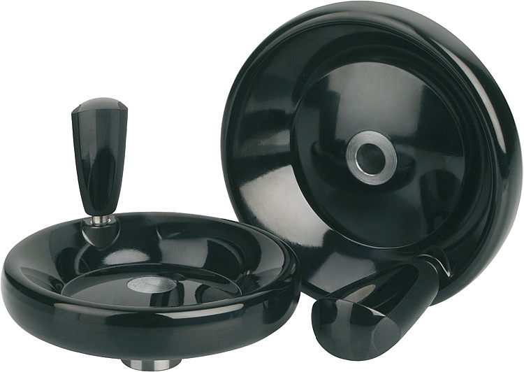 norelem fabrique des volants d'alésage de différent diamètres allant de 100 à 160 mm. La matière du volant est généralement du plastique thermodurcissable de couleur noir. La finition du volant d'alésage peut être brillante.