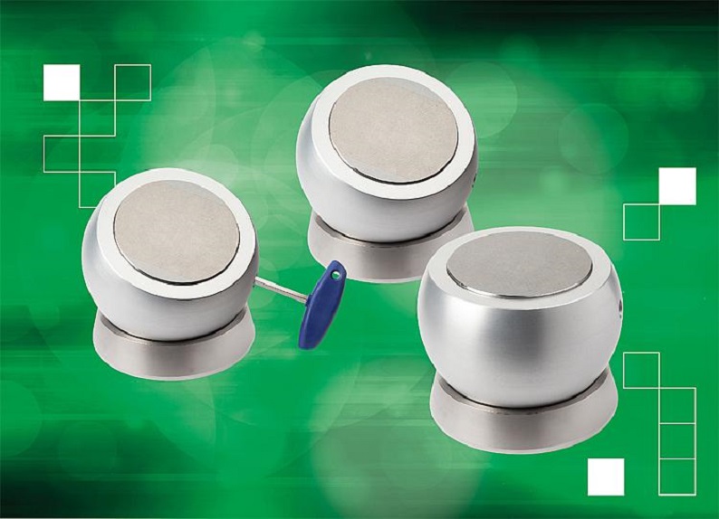 | Les billes de serrage aimantées sont disponibles en quatre tailles différentes, avec des surfaces de contact au diamètre compris entre 80 et 160 mm. En fonction de la géométrie et du poids de la pièce, elles peuvent être inclinées jusqu'à 90° ; les pièces peuvent ainsi être placées dans une position d'usinage optimale. |