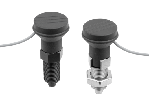 Dans le cas des goupilles de verrouillage avec capteur d'état, un capteur intégré dans la poignée détecte l'état de la goupille. Le capteur est connecté à la commande de la machine via un câble PVC à trois fils. L'état (verrouillé ou tiré) peut être détecté de manière précise, permettant ainsi un contrôle de processus en fonction de l'action. Cela permet de régler la longueur, la hauteur et la position des composants mobiles avec une plus grande précision. Les goupilles de verrouillage de norelem sont disponibles en acier ou en acier inoxydable.