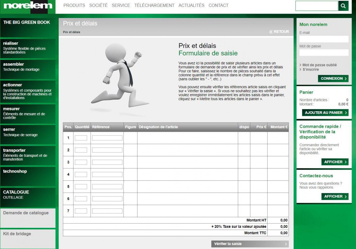 Vous souhaitez connaître une disponibilité ou le tarif d’une référence ? Rendez-vous sur le site internet de NORELEM dans la rubrique disponibilités, celle-ci est sans identifiants. Il suffit d'entrer la quantité ainsi que la référence du produit.