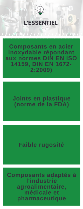 La gamme de produits Hygienic DESIGN répond à des éxigences élevées :
