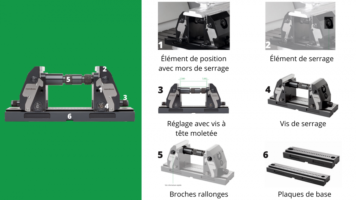 Les élements qui composent l'étau de bridage 5 axes compact :
