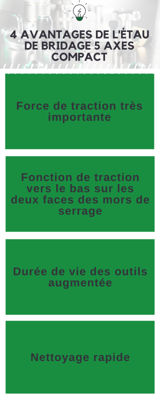 L'étau de bridage 5 axes compact est un système permettant un usinage optimal des pièces complexes sur des machines 5 axes.