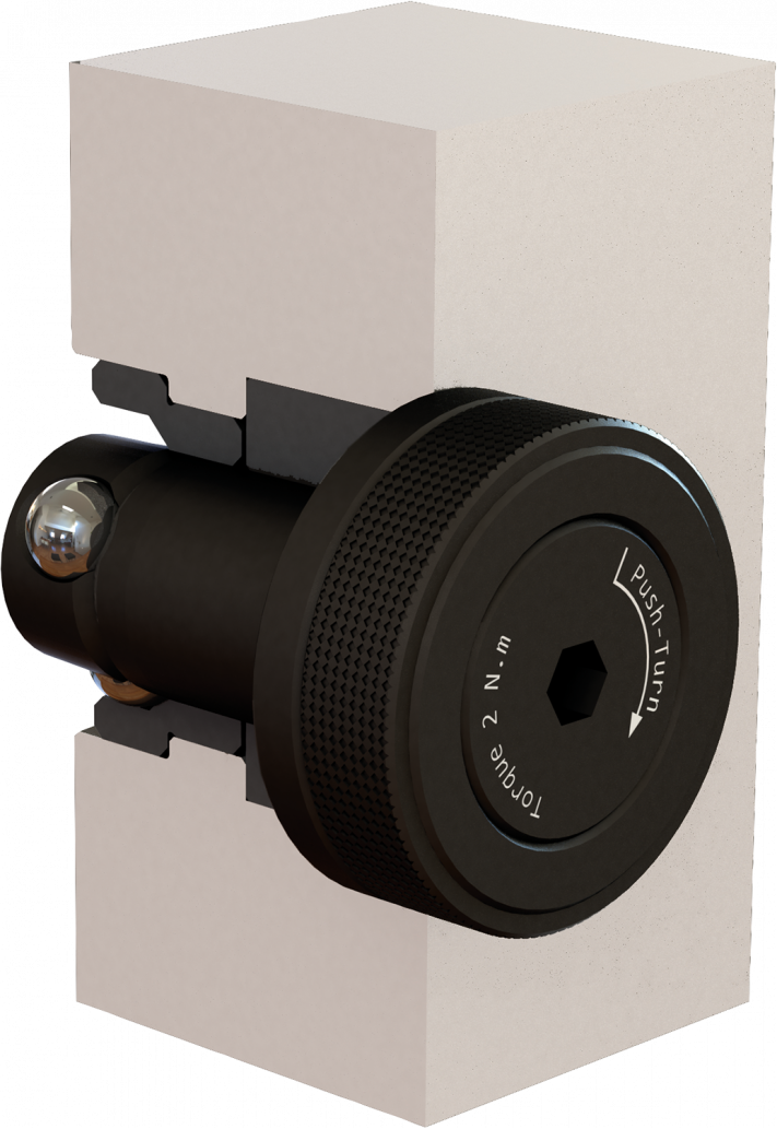 Le fait de serrer la vis permet d epousser la bille centrale et d'écarter les trois billes de fixation vers l'extérieur où eles se retrouvent en pression dans la douille de fixation.