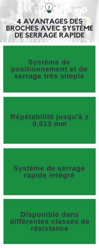 Utilisation de la broche avec système de serrage rapide en image :