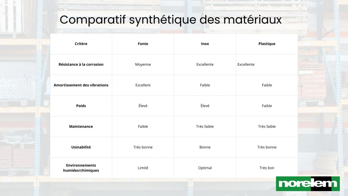 Dans la conception mécanique et la construction d’équipements industriels, le choix du matériau est une décision stratégique. Il influence directement la performance, la durée de vie, la maintenance et le coût global d’une installation. Parmi les matériaux les plus utilisés dans les composants standardisés, la fonte, l’acier inoxydable et les matières plastiques occupent une place centrale.