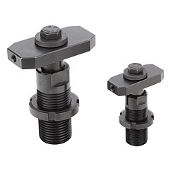 La double bride pivotante à 90° permet de serrer simultanément deux pièces à usiner. Elle pivote à 90° automatiquement lors du serrage ou desserrage. En fonction de la géométrie des pièces, la double bride peut être remplacée par une double bride sur mesure. Pour assurer un serrage optimal, il est nécessaire de serrer deux pièces simultanément ou de prendre appui sur un support adapté.