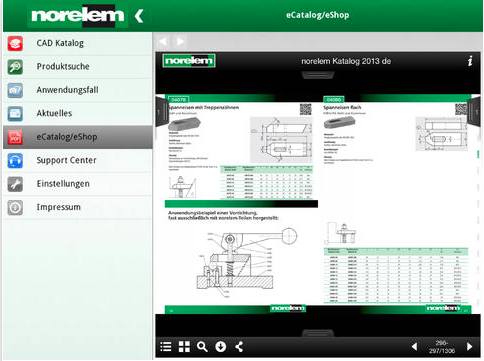 Le catalogue norelem le "Big Green Book" est disponible gratuitement sur iTunes pour iOs, et Google Play pour Android. Cette application de CAO fournit une vaste gamme de pièces standardisées et des composants pour les ingénieurs, les concepteurs de différents domaines, mais également pour les novices, notamment les étudiants :