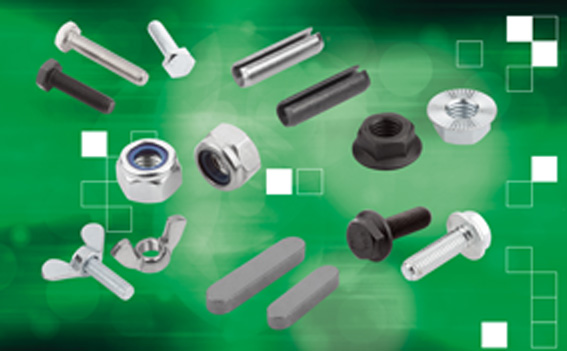 - Éléments de liaison standardisés tels que écrous papillon (DIN 315), vis à oreilles (DIN 316), douilles de serrage fendues modèle lourd (ISO 8752), rondelles ressort (DIN 6796), rondelles ressort (DIN 137 B), cales (DIN 988), rondelles (DIN 9021), segments d'arrêt pour arbres (DIN 6799) ou encore clavettes parallèles (DIN 6885 A)
